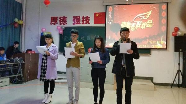 在圣诞节和元旦双节来临之际,我系团总支、员工会经过精心组织安排,于12月24日晚7点,在教学楼东103教室举办了2015年迎新春庆元旦文艺晚会。100余名同学欢聚一堂,工程管理系主任石速耀、副主任李灿以及工程管理系各年级辅导员出席了此次晚会。晚会在李妍、徐航航等四位主持人的新年祝福中拉开帷幕。李强同学为大家带来了精彩的《双截棍》表演;崔娜同学演唱的《矜持》旋律优美,歌声动听;小品《人才难得》和《双簧》让在场的观众捧腹大笑;舞蹈《梦幻华尔兹》将观众带入了一个童话般的世界;13级辅导员高翔深情献唱的《三百六十五里路》把晚会的气氛推向高潮……。