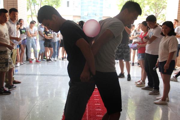 本次活动18个队参加比赛,共6个环节,依次是摩擦摩擦、夹玻璃球、集体跳绳、学霸出击、你划我猜、撕名牌大战,要求每队5人,3男2女组合。每一环节集体协作,按比例淘汰队伍,最终2个队伍进入撕名牌大战环节。经过激烈角逐,超人队和卓越队进入撕名牌大赛。最终卓越队成为本次活动的获胜队。
